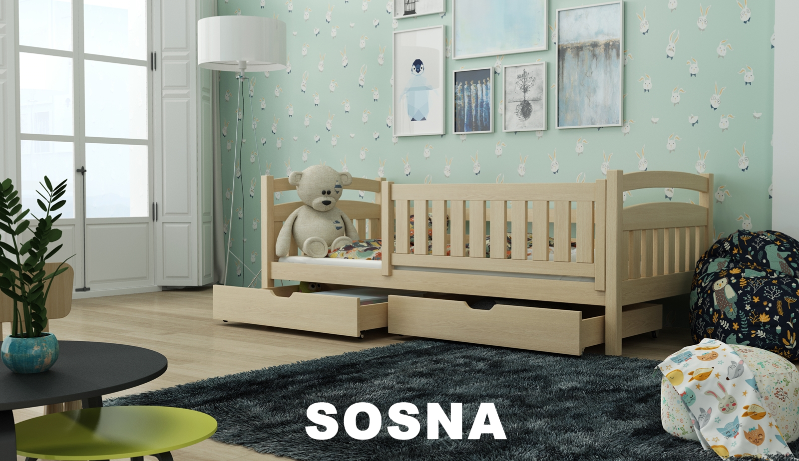 Postel z masivu borovice je vyrobena z materiálu o síle 2,6cm,což zajišťuje vysokou stabilitu a pevnost konstrukce. Vyrobeno z kvalitního dřeva první jakosti. Povrchová úprava je provedena bezbarvým ekologickým lakem,který splňuje veškeré požadavky o nezávadnosti.Pro svoji pevnost je velmi vhodná do zátěžových prostor(dětské pokoje,penziony,chalupy apod).Veškeré spoje jsou provedeny bukovými kolíky a kovovými šrouby