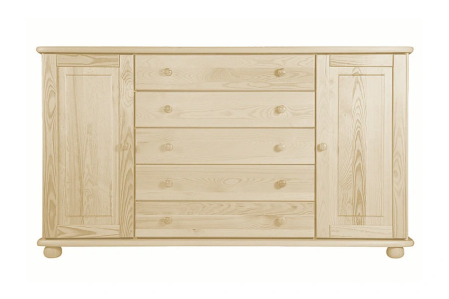 Tato praktická komoda je vybavena kvalitním kováním a pojezdy. Je vyrobena ze 100% přírodního dřeva, masivu borovice.