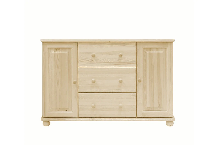 Tato praktická komoda je vybavena kvalitním kováním a pojezdy. Je vyrobena ze 100% přírodního dřeva, masivu borovice.