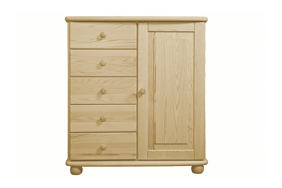 Tato praktická komoda je vybavena kvalitním kováním a pojezdy. Je vyrobena ze 100% přírodního dřeva, masivu borovice.