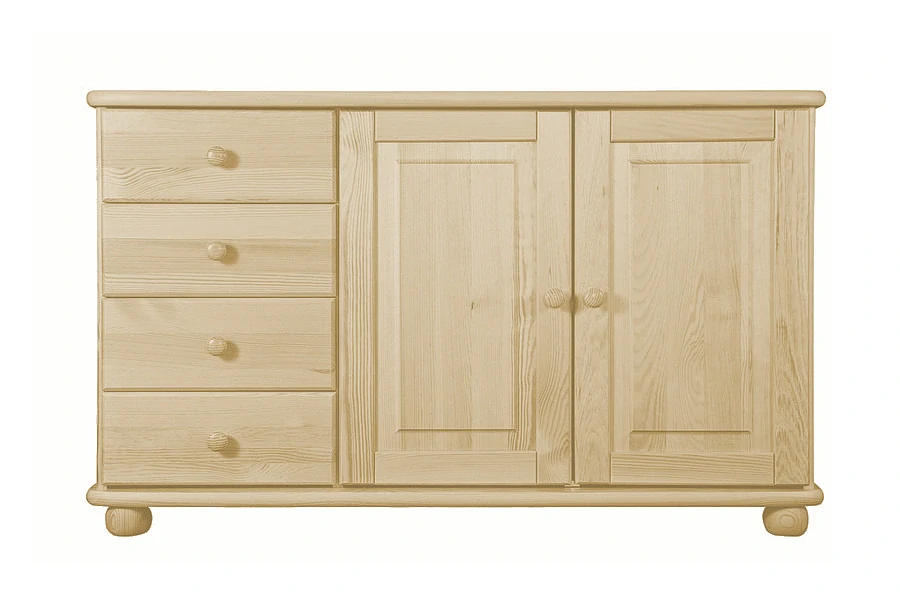 Tato praktická komoda je vybavena kvalitním kováním a pojezdy. Je vyrobena ze 100% přírodního dřeva, masivu borovice.