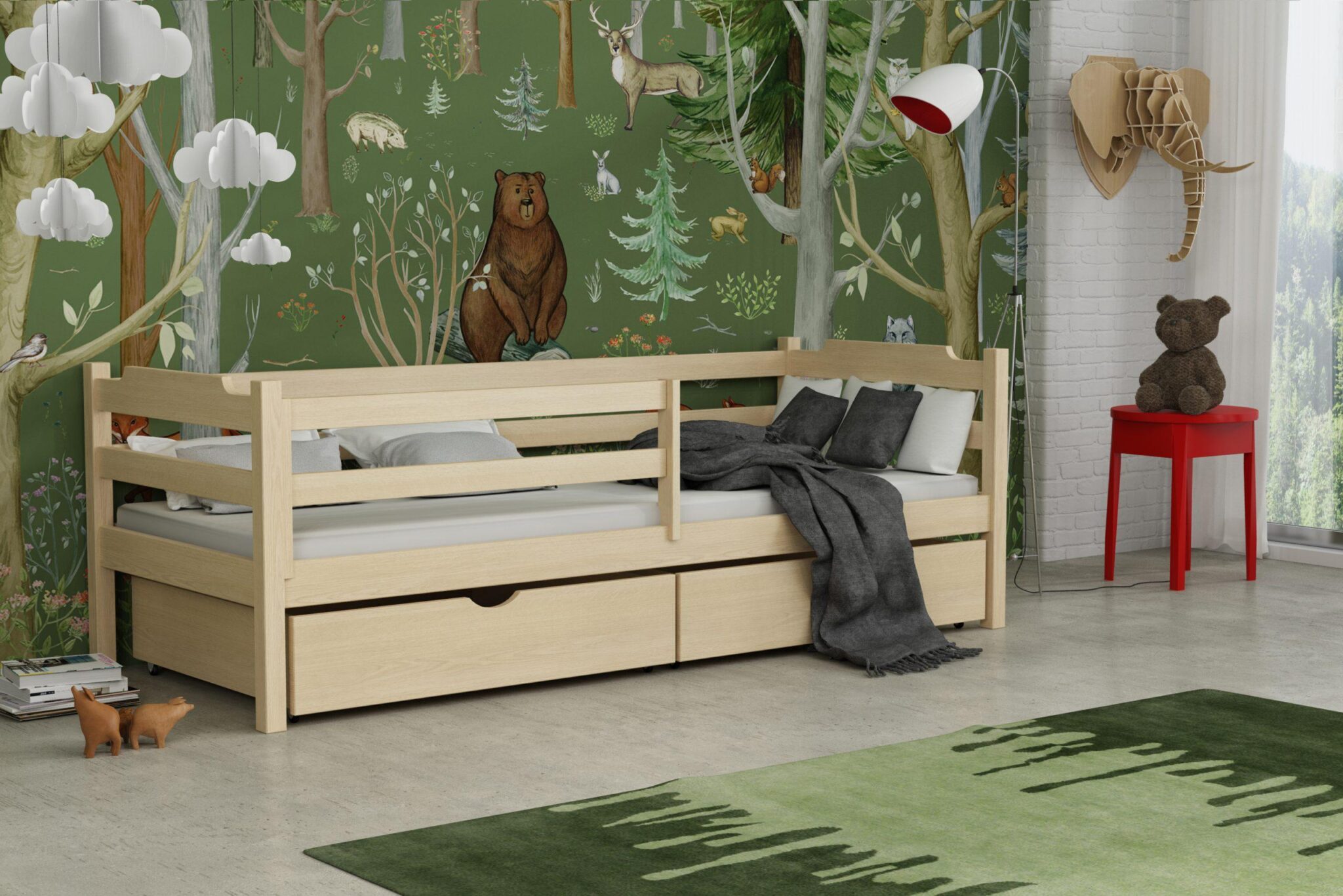 - Dřevěná postel MIKO 07 80x200 cm borovice masiv s úložným prostorem