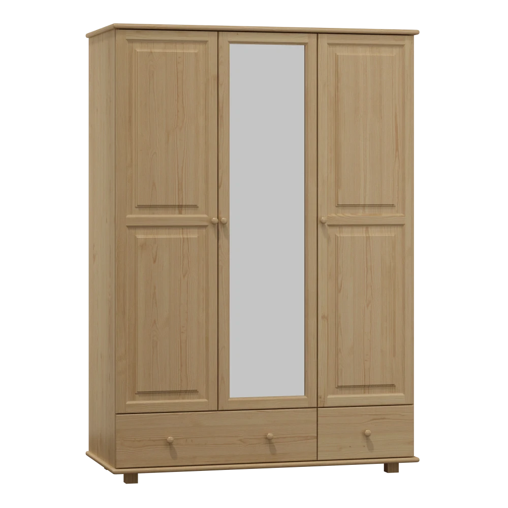 - Dřevěná šatní skřín MB 65b se zrcadlem z borovice šířka 133 cm