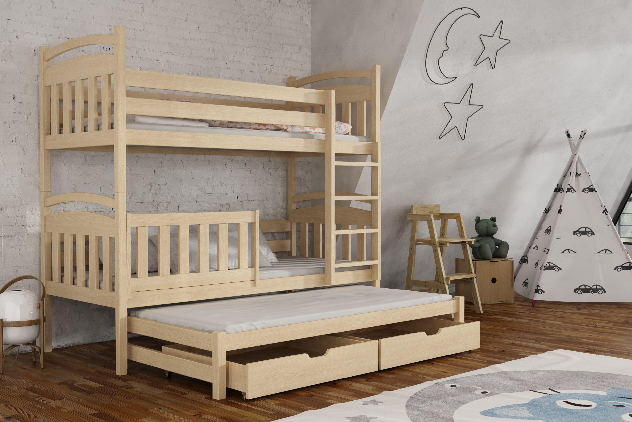 - Patrová postel s výsuvným lůžkem KONRAD 01 80x200 cm borovice masiv s úložným prostorem