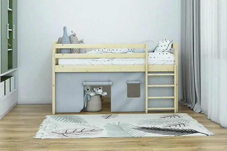 Vyvýšená patrová postel vyrobená z masivního borovicového dřeva nejvyšší kvality.