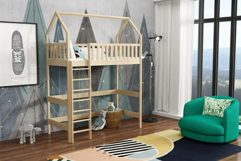 Vyvýšená patrová postel vyrobená z masivního borovicového dřeva nejvyšší kvality.